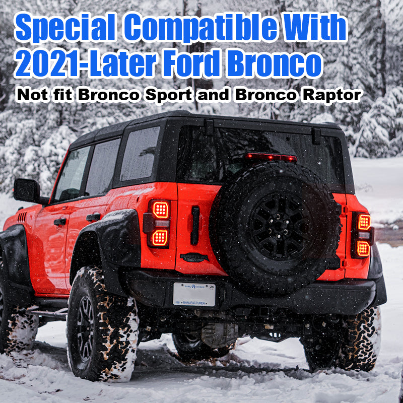 - 【High Brightness 】No more difficulties backing up at night thanks to the helpful LED lighting elements in these Ford Bronco tail lights, which also look appealing. The LED lighting elements include powerful rear lights and distinctive perimeter lighting.