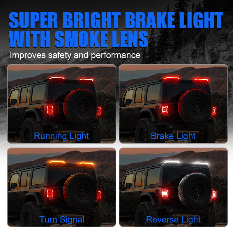 - 【4 Lighting Modes】There are four lighting modes available on the enhanced high-mounted brake light: reversing, brake, turn signal, and running.