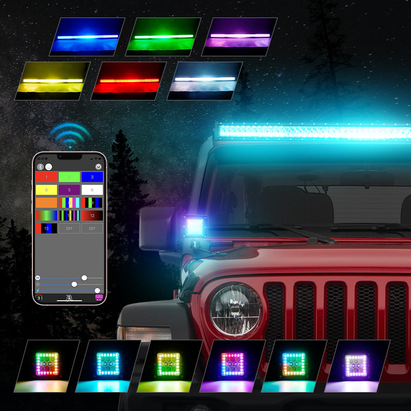 We all love adding special features to make our Jeep stand out. This new LED light bar is custom-made for the Jeep Wrangler JL. In addition to the standard features, we've incorporated an RGB function, allowing you to change the color of your light bar and spotlights to your liking. These lights have been rigorously tested to meet your off-road adventure lighting needs and have outperformed other options on the market.